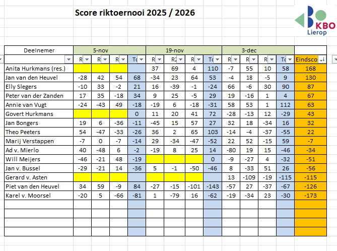 De rikcompetitie is weer begonnen, afgelopen woensdag zijn we met 13 rikkers aan 3 tafels gestart.